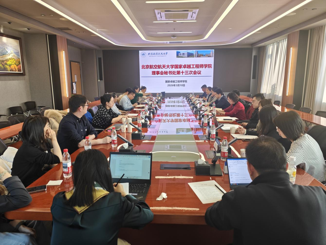 3月10日,北航国家卓越工程师学院在学院路校区第一馆510会议室召开理事会秘书处第十三次会议。北航和联培企业秘书处成员参加会议。理事会秘书处校方秘书长、北航国家卓越工程师学院常务副院长曹庆华主持会议。